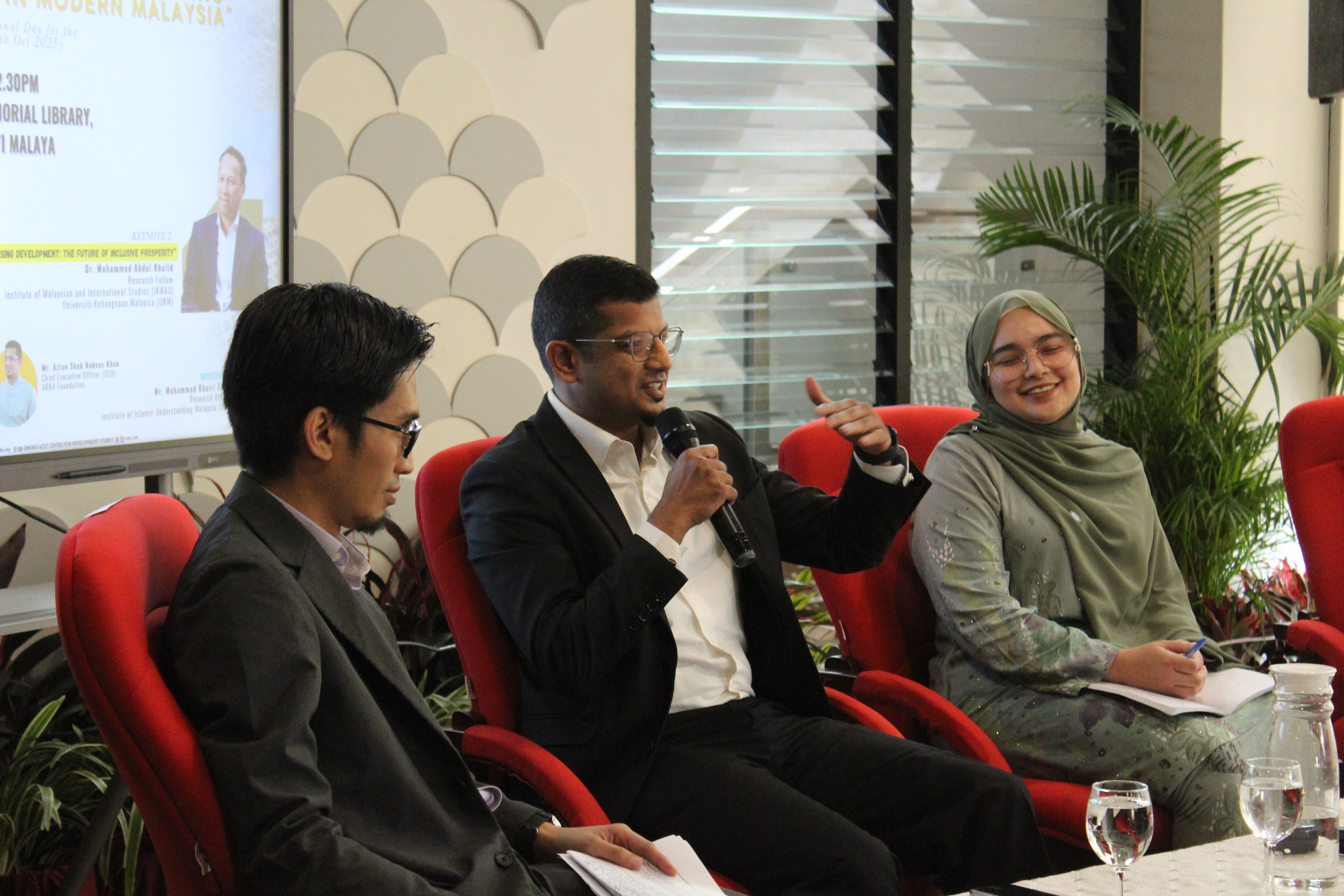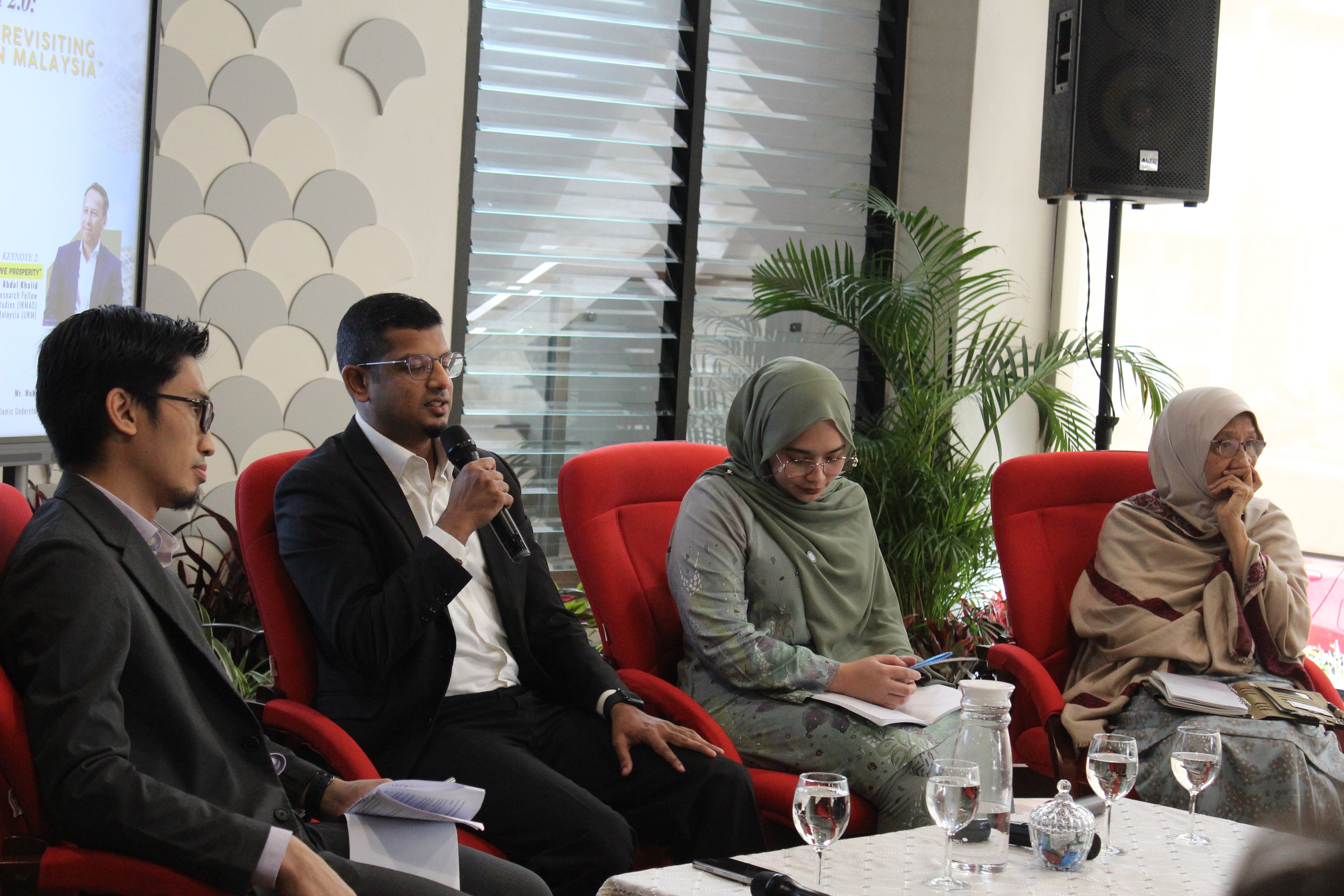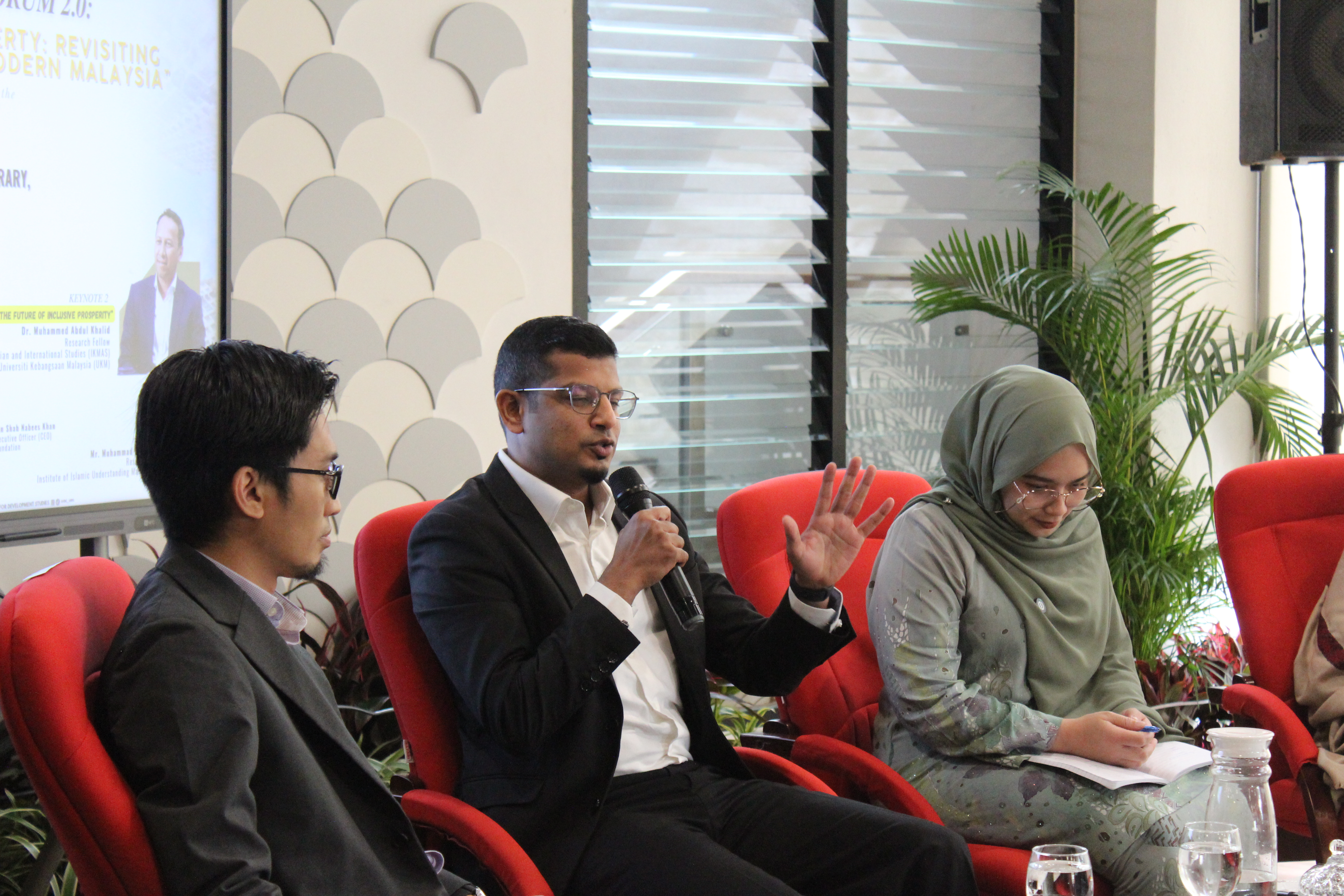 The forum commenced with a welcoming address by YBhg. Dato’ Sri Mustapa Mohamed, followed by two insightful keynote sessions. Keynote Address 1 was delivered by Dr. Muhammad Syafiq Borhanuddin, Fellow at the Institute of Islamic Understanding Malaysia (IKIM), while Keynote Address 2 was presented by Dr. Muhammed Abdul Khalid, Research Fellow at the Institute of Malaysian and International Studies (IKMAS), Universiti Kebangsaan Malaysia (UKM).